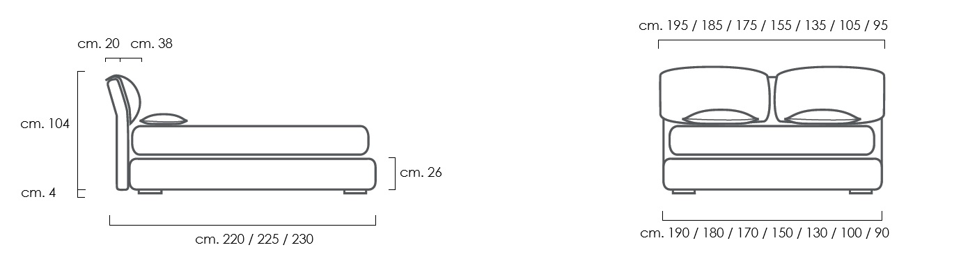 Si distingue per le sue linee minimali, senza trascurare tutto il comfort che un letto deve offrire: testata inclinata e morbidi cuscini per offrire un comodo appoggio.