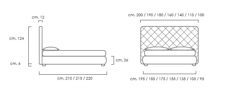 Questo letto ospita un materasso da cm.160x195 (non incluso nel prezzo).